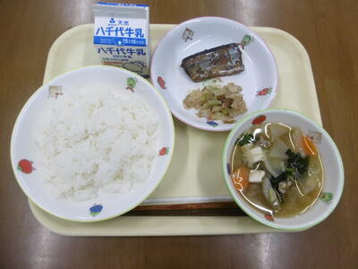 ・牛乳 ・ごはん ・さんまの生姜煮 ・梅おかか和え ・豚汁
