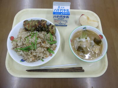 ・牛乳 ・肉めし ・ちくわのいそべ揚げ ・味噌汁 リンゴ