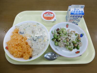 ・牛乳 ・キャロットライスクリームソース掛け ・ビーンズサラダ ・アセロラゼリー