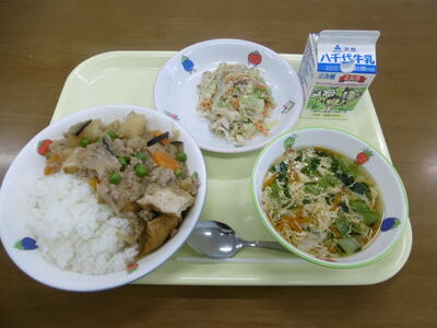 ・牛乳 ・生揚げの肉みそ丼 ・キャベツのごまマヨネーズ ・かき玉汁