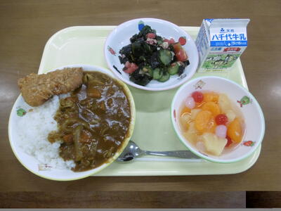 ・牛乳 ・カツ(勝つ!)カレーライス ・たこときゅうりのマリネ ・紅白フルーツポンチ