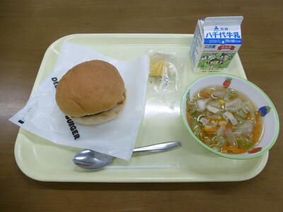 ・牛乳 ・チーズバーガー 野菜スープ ・冷凍パイン