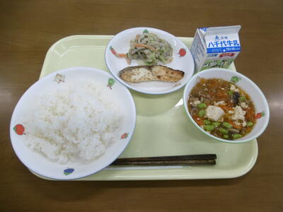 ・牛乳 ・ごはん ・さわらのごまみそ焼き ・ごぼうのサラダ ・五目豆腐