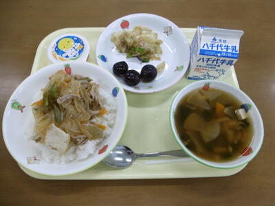 ・牛乳 ・五目あんかけ丼 ・切り干し大根の中華和え