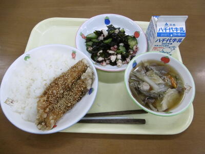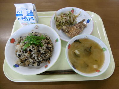 ・牛乳 ・ひじきごはん ・ぶりの竜田揚げ ・白菜のおかか和え ・玉ねぎととうふの味噌汁