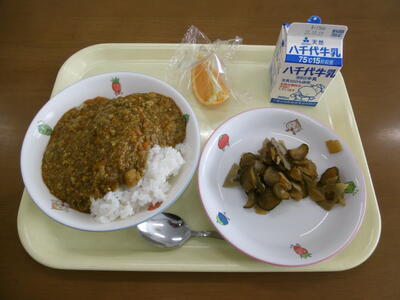 ・牛乳 ・ひよこ豆のカレー ・手作り福神漬け ・オレンジ