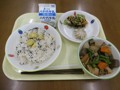 ・牛乳 ・栗ご飯 ・野沢菜饅頭 ・野菜の昆布和え ・筑前煮
