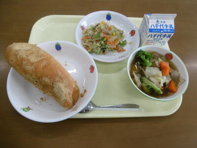・牛乳 ・きなこあげパン ・小松菜とツナのサラダ ・秋野菜のポトフ ・