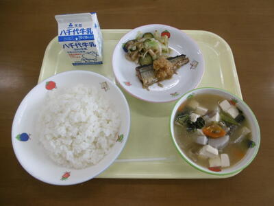 ・牛乳 ・さんまの塩焼き ・梅おかか和え ・とん汁