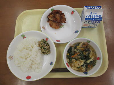 ・もずくとたまごとモロヘイヤのスープ・ぎゅうにゅう です。