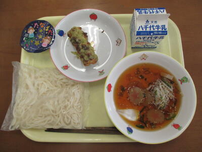 ・ひやむぎ(つけじる、ぐ)・ちくわのいそべあげ・たなばたゼリー