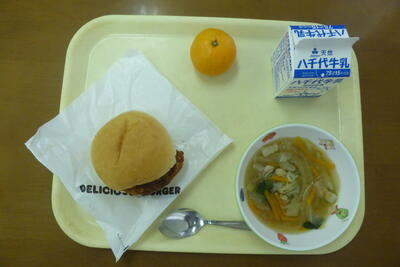 きょうは3校時日課のためすばやく配膳できるメニューにしました。コロッケは塩焼にあるお肉屋さんの手作りです。毎日おいしく丁寧に揚げたてを作ってくださっています。ABCスープと一緒に美味しくいただきましょう。
