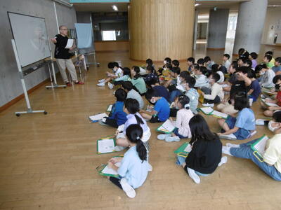 4年生が、「わくわくたいむ(総合的な学習の時間)」で妙典のまちについて探究活動をしています。妙典には、自然・歴史・文化など様々な魅力がいっぱい!上妙典地区にある八幡神社の「お神輿」もその一つです。先日は、上妙典青年会の真田さんをゲスト・ティーチャーにお迎えし、お神輿にまつわるお話を伺いました。「なぜ、お神輿を担ぐのか?」「お神輿の重さはどれくらいか?」「お神輿の造りはどうなっているのか?」「お神輿はどうやって作るのか?」など、子どもたちの疑問一つ一つを丁寧に説明してくださいました。「へえ~!そうなんだ!初めて知った!」…「お神輿のふしぎ発見」の探究は、まだまだ続きます。