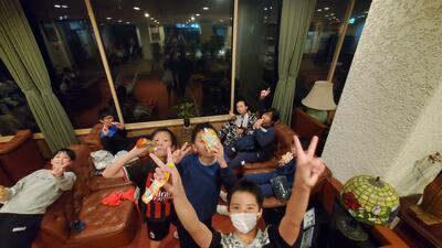 朝食をいただき、荷物をまとめて退館式です。お世話になったホテルの方々に感謝感謝です。お礼の気持ちをこめて、急遽「僕らの未来へ」の歌をプレゼント♪素敵な思い出になりました。