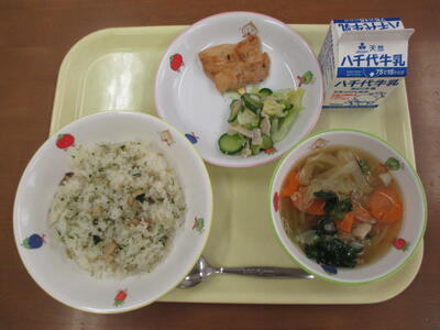 5月8日(水)の給食 投稿日時 : 2024/05/08 妙典小学校管理者 今日の献立は、 ・じゃこガーリックピラフ・マーマレードチキン・パインサラダ・ABCスープ・ぎゅうにゅう です。 今日のワンポイントは・・・「じゃこガーリックピラフ 」についてです。妙典小のみなさんに人気メニューのじゃこガーリックピラフが登場です。にんにくの味がしっかり効いていてパンチのある味に仕上げました。にんにくには体温を上げて、活発に活動しやすくしてくれます。食べたら力が湧いてくるはずです!!少しずつ暑い日が増えてきました。夏バテしないようにしっかりよくかんで残さず食べましょう。 0 {{options.likeCount}} {{options.likeCount}} {{options.unlikeCount}} {{options.unlikeCount}}