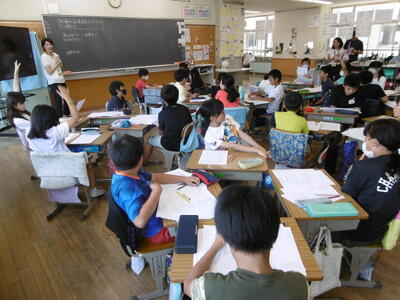 本校では、「主体性を育てる」を学校教育目標に掲げ、日々の授業実践に取り組んでいます。特に、生活科や総合的な学習の時間(わくわくタイム)では、具体的な体験や活動を通して、あるいは、これまで他教科で学んできた「学習内容」を横断的に関連付けながら、子どもたちの気付き、疑問、興味関心、願い等を基盤にした、ダイナミックな探究活動を展開しています。子どもたちは、友だちと関わり合いながら、自分らしく楽しく活動を進めています。「主体的に学ぶ姿」が、輝いています。