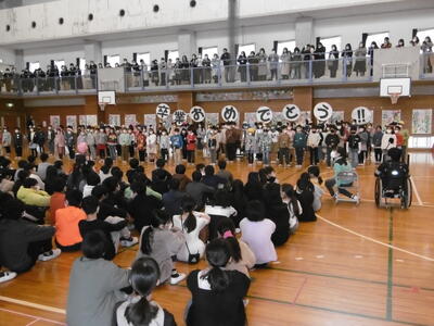 6年生の卒業の日が、いよいよ近づいてきました。2月24日(金)には、代表委員会が中心となって、6年生の新たな旅立ちを祝う「旅立ちの会」を開催しました。1~5年生が、お世話になった6年生に「ありがとう」の感謝の気持ちを込めて、各学年でパフォーマンスを披露します。6年生は、各学年の創意工夫を凝らした楽しい発表に拍手喝采!きっと、6年間のいろいろな思い出がよみがえってきていたことでしょう。そして、心のこもったお祝いの言葉は、いつまでも6年生の胸に残ることでしょう。フィナーレでは、6年生から「ビリーブ」の歌声が在校生にプレゼントされ、合わせて「こころん」の引継ぎがありました。6年生の皆さんが残してくれた、たくさんの「あったかはあと」。これからも、妙典小学校のみんなが、さらに大きく育てていってくれることでしょう。6年生の皆さん、今までありがとう!