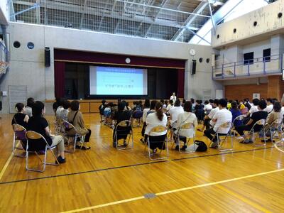 講師に、本校 はあと学級の保護者の方をお招きして、車いすでの生活に関する体験を交えたお話をしていただきました。