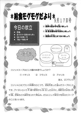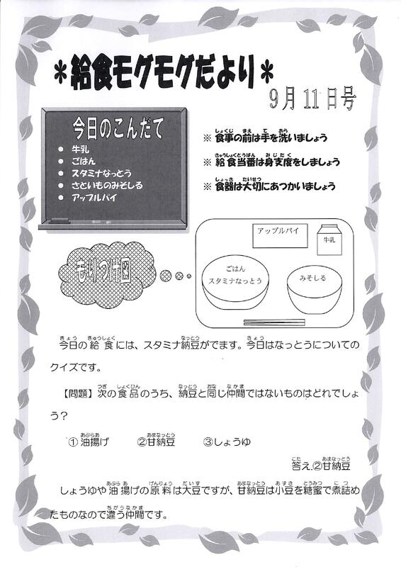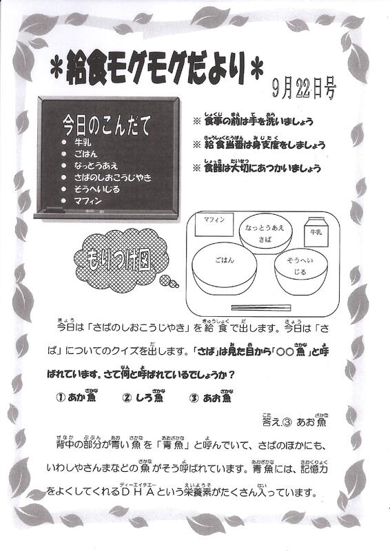 今日の献立は、あじのさんが焼き、磯和え、ごはん、千葉野菜の味噌汁、牛乳です。
