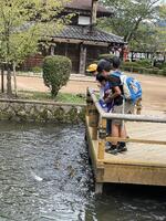 指導員の方のお話を聞いたり、自分たちで生き物を見つけたりします。