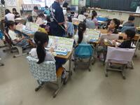うずらフェスティバル当日に、学級閉鎖のため参加できなかった2クラスで「うずフェス出前授業」をしていただきました。うずフェスの中でも人気を博した「スライム」「うちわデコ」「スポンジペーパーアート」の3つを体験させてもらいました。