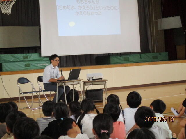 「いかのおすし」を基本にしながら、「知らない人=家族ではない人」「日頃から先生の言うことを聞いて安全にすごすこと」を教えていただきました。