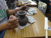 6年生 3,4校時に陶芸教室 陶芸会社の方のご指導の下、作品を仕上げました。