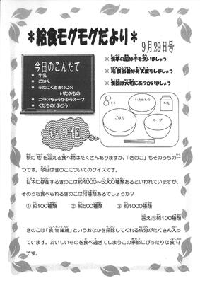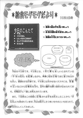 本日の献立は、栗ご飯、イワシの竜田揚げ、きのこたっぷり味噌汁、牛乳です。