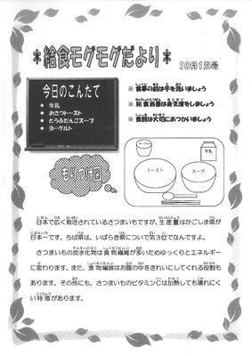 今日の献立は、おさつトースト、豆腐だんごスープ、ヨーグルト、牛乳です。