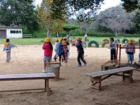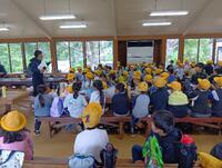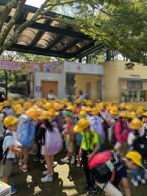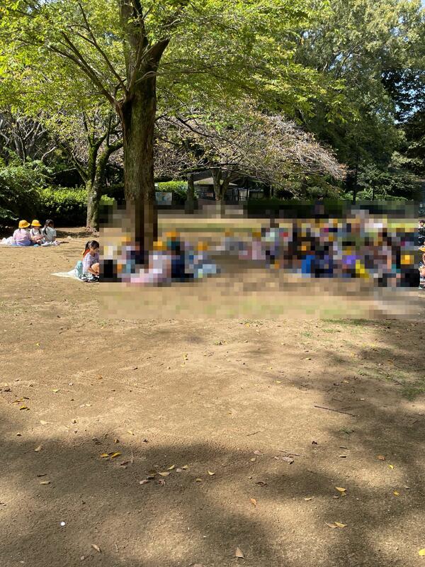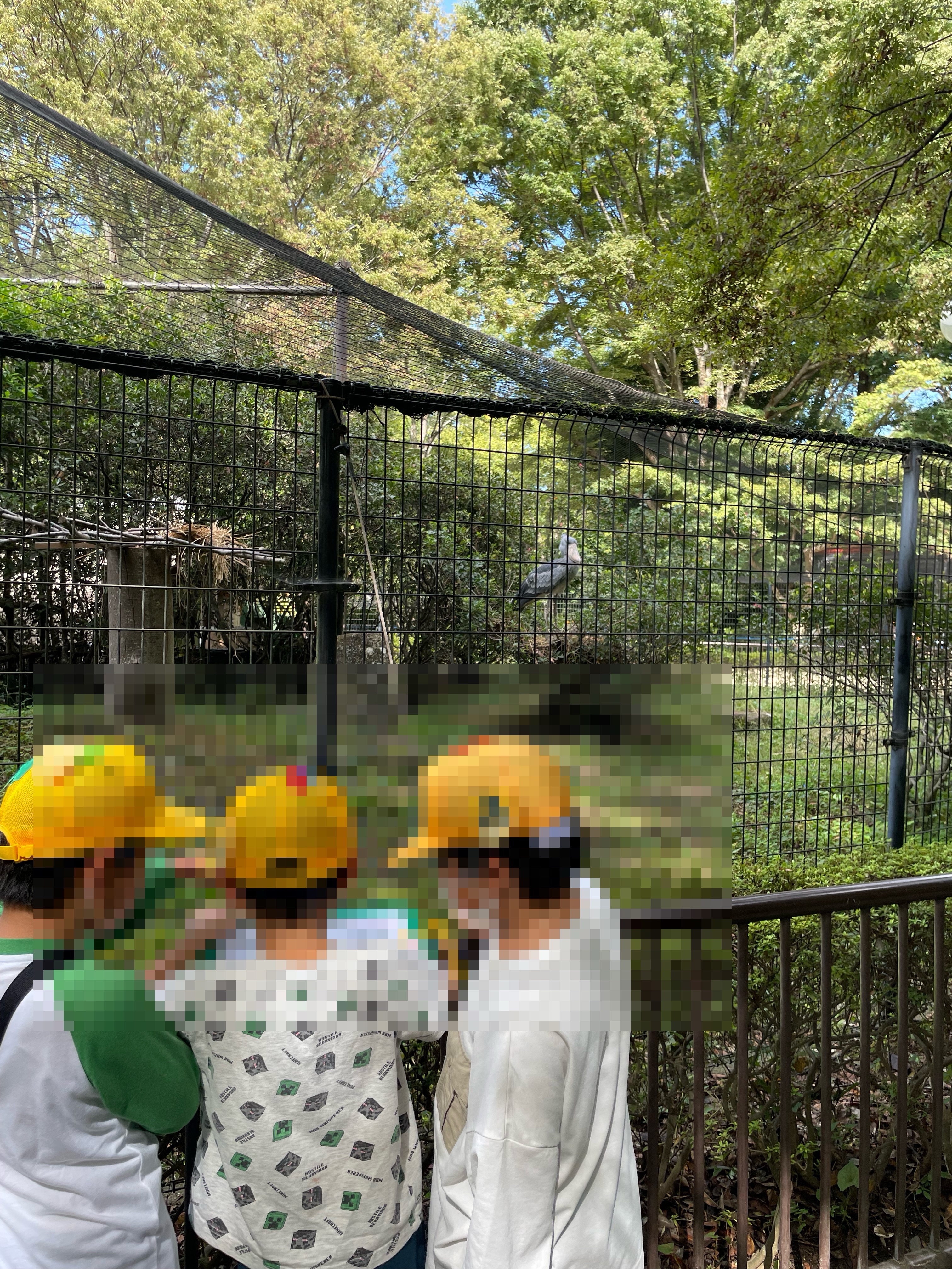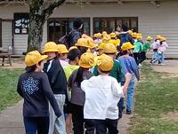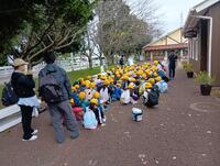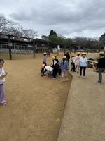 10:15 風が強いので、エーカー広場ではなく、バーベキューハウスに荷物を置いて、クラスごとに園内見学に出発しました。