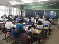 英語、外国語活動 ALTによる4年生の外国語活動の様子です。子供たちは、ALTに興味津々、楽しそうです。