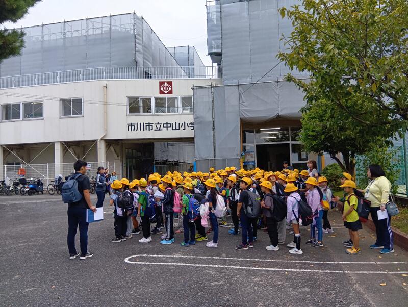 市川警察の方が不審者役として、校内を歩き回り、子供たちや教職員の基本的な動きの確認等をしました。