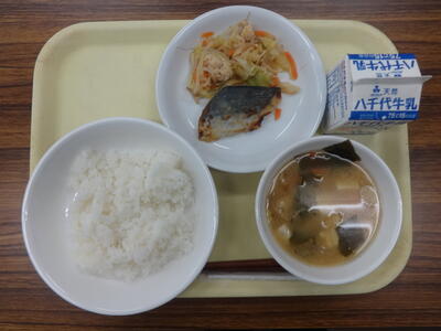今日の献立は、わかめご飯、白身魚のゆずみそ焼き、ごま和え、かぼちゃの味噌汁、牛乳です。