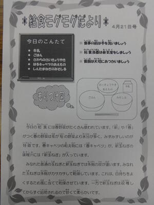 今日の献立は、ぶり大根、ごはん、おこと汁、花みかん、牛乳です。