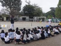 マリーンズ・ベースボールアカデミーのコーチ陣によるマリーンズ・ベースボールチャレンジの体験学習でした。4年生が、体験しました。