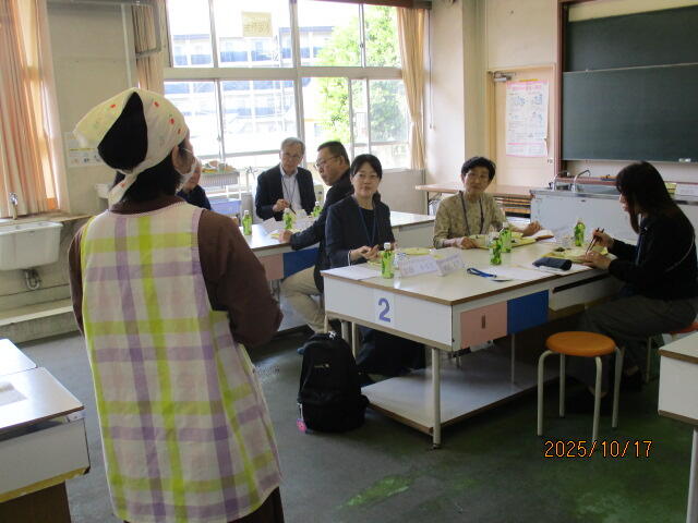 委員の皆様に授業参観と給食試食の後、前期学校評価や教職員の任用についての協議をしていただきました。