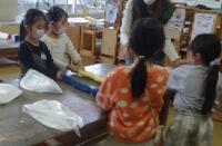1年生 生活科 3,4時間目に、シャボン玉の先生をお呼びして、大きなシャボン玉づくりに挑戦しました。