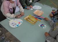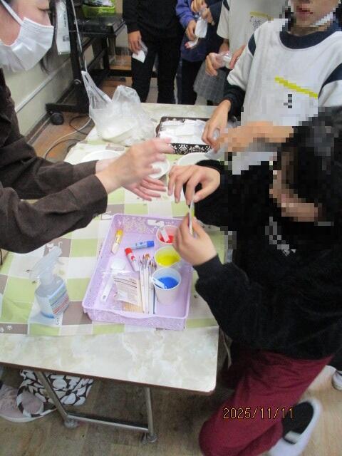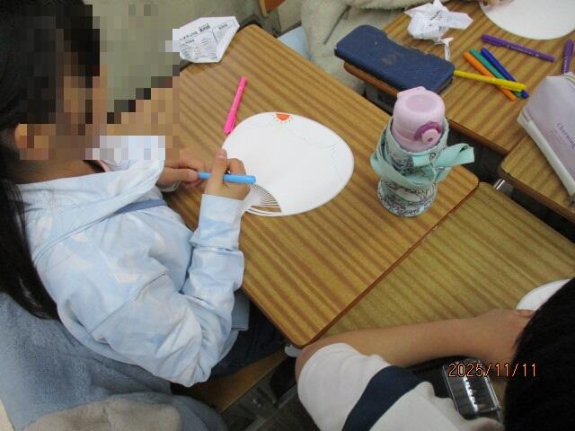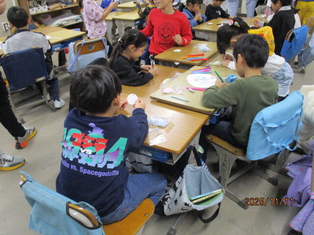 うずらフェスティバル当日に、学級閉鎖のため参加できなかった2クラスで「うずフェス出前授業」をしていただきました。うずフェスの中でも人気を博した「スライム」「うちわデコ」「スポンジペーパーアート」の3つを体験させてもらいました。