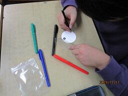 4年生 図工 お面づくりで色塗り中です。集中していて、みんな職人さんのようです。