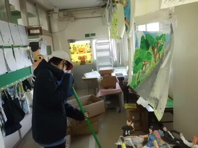 3月25日(火)1~4年生が下校後、5年生の最高学年としての初仕事です。