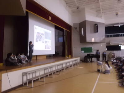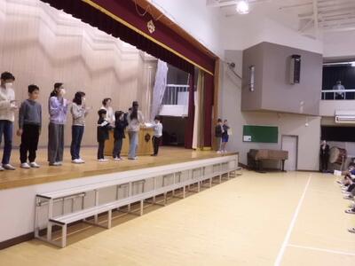 校長先生のお話の中で、前期に頑張ったことを子どもに発表してもらいました。