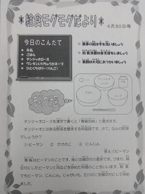 今日から、ブログに給食を紹介します。これまでの給食については、今日の給食の後に紹介いたします。
