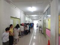 1年生 5時間目に内科検診がありました。廊下で静かに順番を待っています。さすが、うずらっ子です。