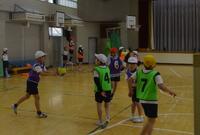 3年生 体育 ポートボール 声をかけあい、ボールをパスし、得点が入るとメンバー同士で喜びを全身で表現していました。