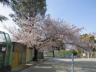 いつもは始業式には散ってしまう桜の花も、子どもたちを待っていてくれました。