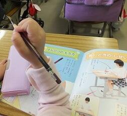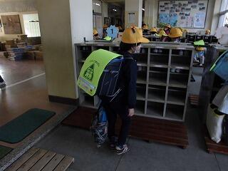 今日は、登校した時の荷物の片づけ方、トイレや靴箱の使い方を学びました。