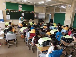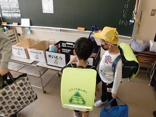 教室についた1年生は、ランドセルを下ろし、椅子に座って静かに始業の時間を待っていました。