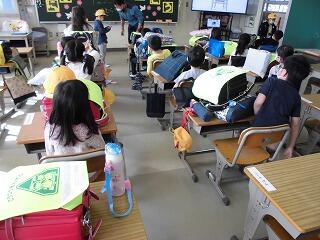 今年度はじめての避難訓練を行いました。今回の大きなめあては、「教室からの避難経路を覚える」です。