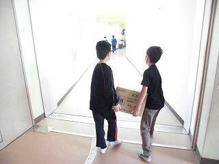 4月は、いろいろな教材やノートなどがたくさん届けられ、事務室前は段ボールの山になります。その教材を6年生が各学年の教室に運んでくれました。さっそく最高学年として、進んで働く姿に頼もしさを感じます。