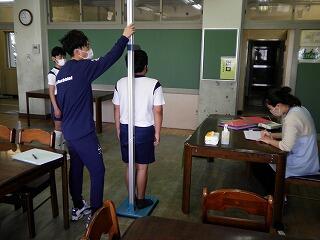 身長と体重を測ってもらった4年生は「〇センチ伸びたよ!」と元気良く報告してくれました。